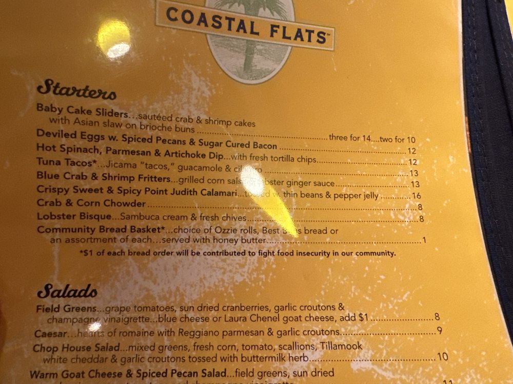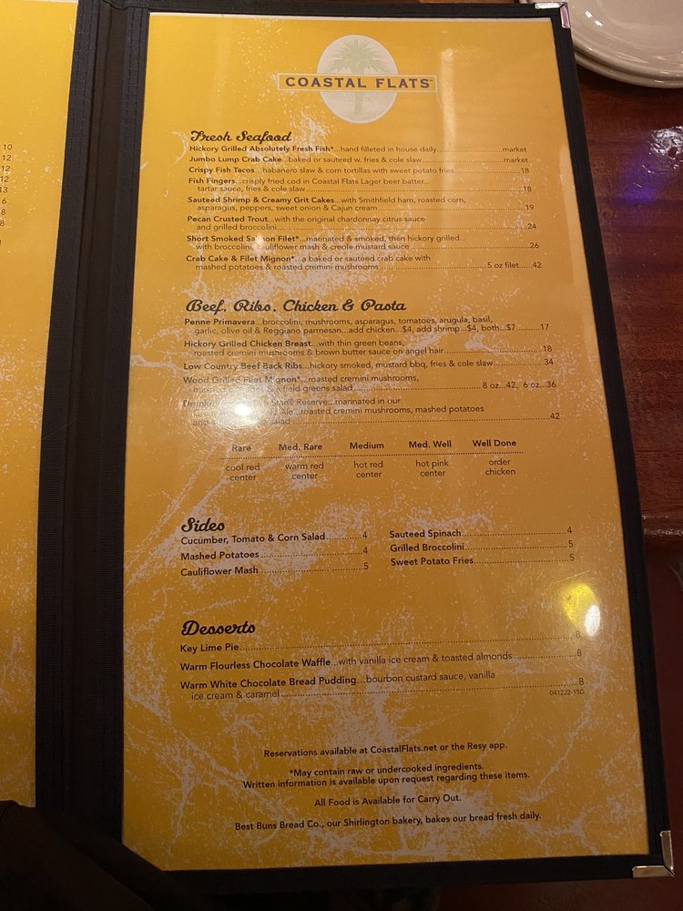 Coastal Flats offers a diverse menu with a focus on seafood, American cuisine, and salads. Located in Mclean, VA, the restaurant provides various amenities such as reservations, delivery, takeout, vegan options, wheelchair accessibility, and more. Customers praise the friendly staff, delicious food, and cozy ambiance. Menu highlights include the warm goat cheese salad, daily specials like the corn and queso dip, crispy fish tacos, and the famous Ozzie rolls. The service is top-notch, with attentive wait staff like James and Wes, who go above and beyond to ensure a pleasant dining experience. Coastal Flats' decor is coastal-themed, creating a relaxed and inviting atmosphere perfect for enjoying a meal after shopping in the mall. Whether you're a seafood lover, salad enthusiast, or craving a classic burger, Coastal Flats is a must-visit destination for a memorable dining experience.